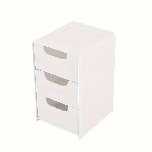 No-assembly desktop storage cabinet, stylish 3-tier white drawer organizer with round handles, suitable for office supplies, jewelry, and cosmetics. Lightweight and odor-free, a cute and practical desk organizer -
